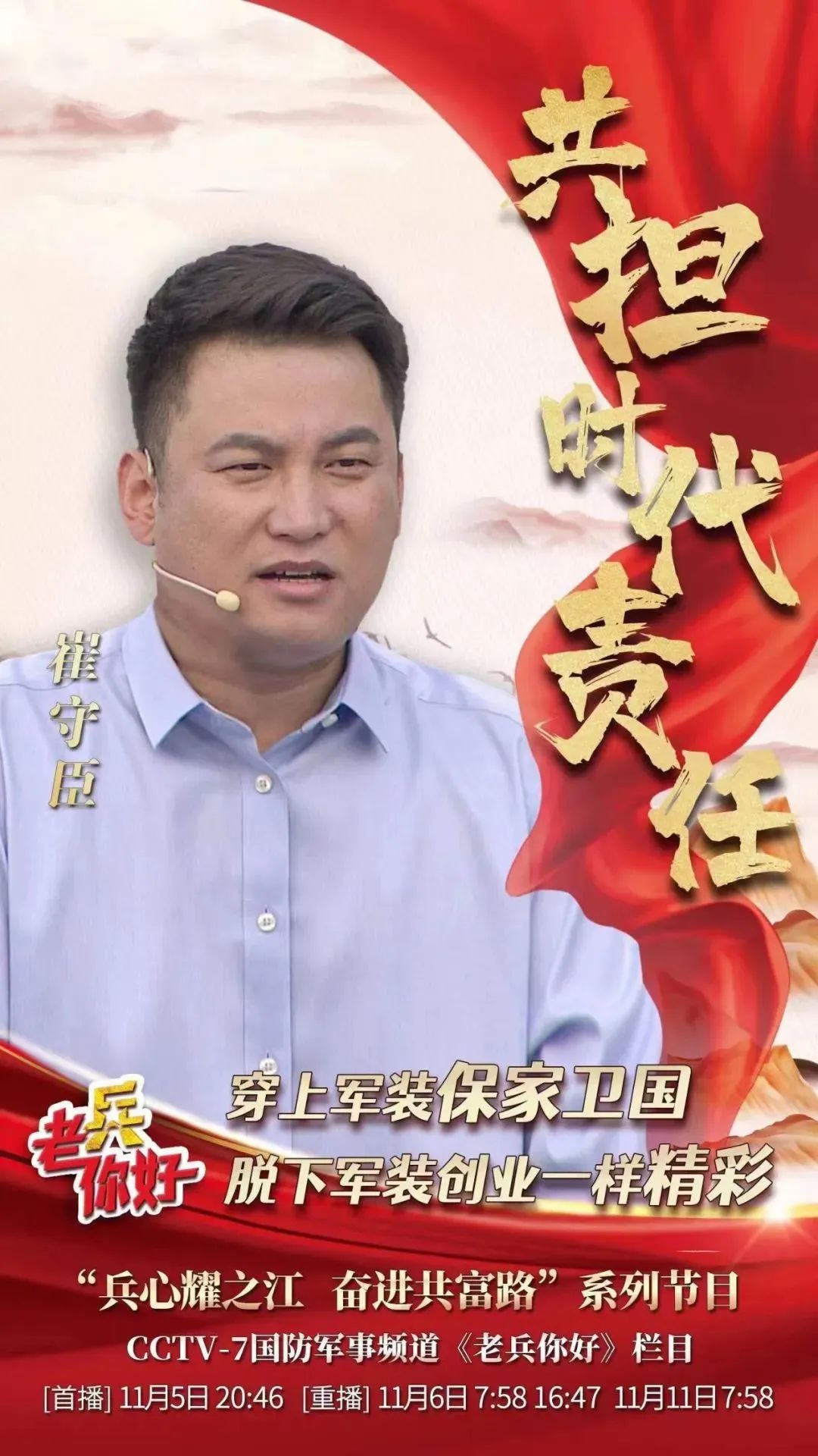11月5日晚8時45分,崔守臣守在央視國防軍事頻道前,看著《老兵你好》欄目准時開播。他是一名來自金華的老兵、民革黨員,曾獲浙江省模范退役軍人、浙江省“首屆最美退役軍人”、浙江省科技追夢人、2020年浙江省企業“創新達人”、浙江省“最美政協人”,也是當天節目的主人公。