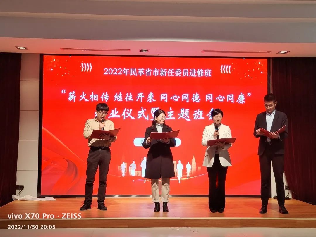 2022年民革浙江省市新任委員進修班全體學員經過為期4天的學習,於12月1日下午順利結業。民革浙江省委會專職副主委、一級巡視員劉淨非出席主題班會暨結業式,為學員們頒發結業証書並講話。