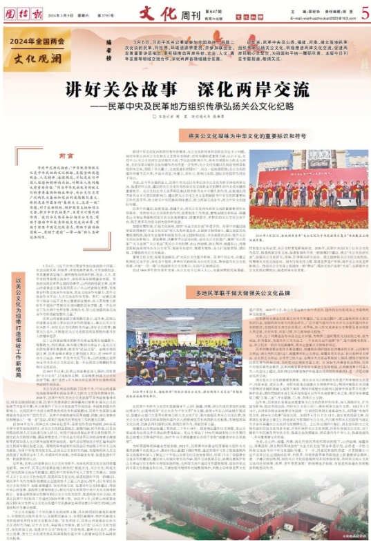 近年來,民革中央及山西、福建、河南、湖北等地民革組織傳承弘揚關公文化,積極推進兩岸文化交流,促進兩岸同胞心靈契合,為祖國和平統一履職盡責。今日刊發專題報道,敬請關注。