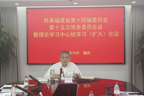 10月15日,民革福建省第十四屆委員會第十五次常委會會議暨理論學習中心組學習(擴大)會在福州召開。民革福建省委會主委夏先鵬出席並主持會議。民革福建省委會副主委董良瀚、林惠中、戴鵬飛、程明、秦源、李智、謝光球,民革福建省委會常委、省委會機關處室負責人參加會議。