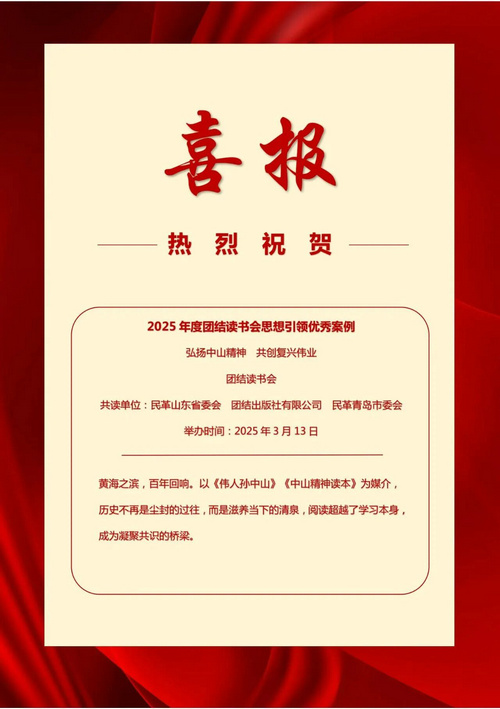 【山東】團結報社表彰2025年度團結讀書會優秀案例 “‘弘揚中山精神 共創復興偉業’團結讀書會”獲思想引領優秀案例