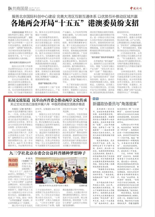 【山西】《中國新聞》報道:民革山西省委會推動兩岸文化交流