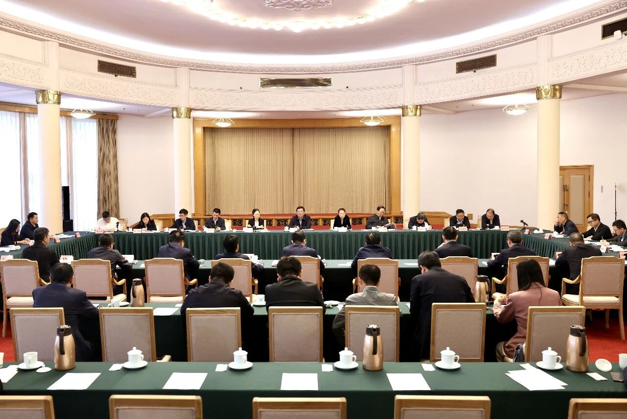 4月16日,調研組在濟南召開座談會。中共山東省委常委、常務副省長張海波介紹山東省推動全國統一能源市場體系建設有關情況,中共山東省委常委、統戰部部長鄧雲鋒主持座談會,山東省有關單位負責同志、企業家代表發言。