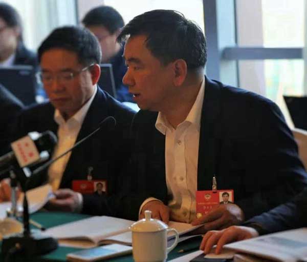3月10日上午,全国政协十三届一次会议分组讨论两高报告。图为民革界小组会上,李生龙委员发言 。