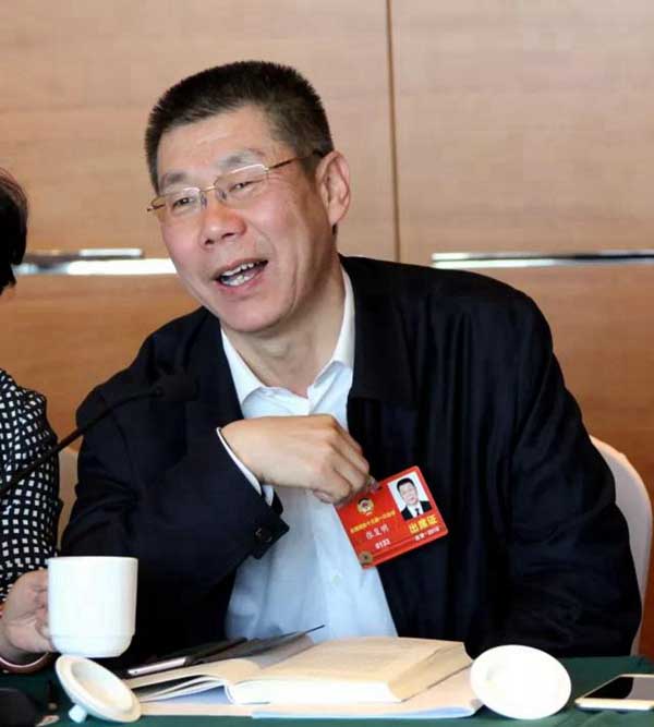 3月10日上午,全国政协十三届一次会议分组讨论两高报告。图为民革界小组会上,甄树清委员发言。