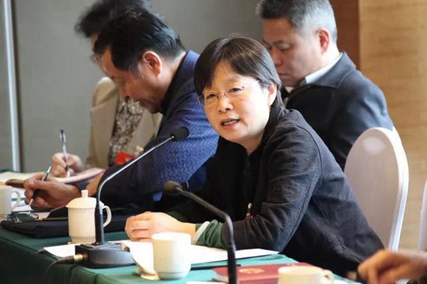 3月10日上午,全国政协十三届一次会议分组讨论两高报告。图为民革界小组会上,傅莉娟委员发言。