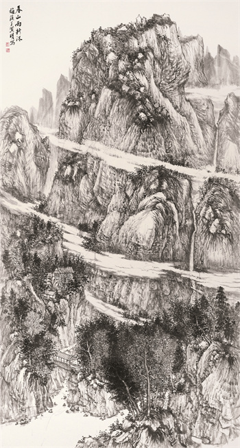 46.春山雨新沐_177cm×96cm_中国画山水_王贤明