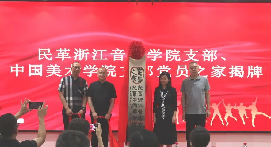 刘正、蔡亦军、浙江音乐学院支部主委于钟、中国美术学院支部主委张爱国为党员之家揭牌。