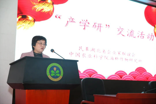 10月10日下午,由民革湖北省企业家联谊会、中国农科院油料作物研究所联合主办的“产学研”交流会在油料所召开,湖北省政协副主席、民革湖北省委会主委王红玲出席活动并讲话,民革湖北省委会专职副主委秦明山、副主委邓乾春参加活动。