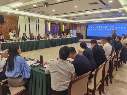 4月26日下午,民革四川省委会企联会同到访的民革天津市委会企业家联谊会召开交流座谈会。天津市政协副主席、民革天津市委会主委齐成喜出席会议并讲话,民革天津市委会专职副主委王红梅、民革天津市委会企业家联谊会会长姚小青、民革四川省委会专职副主委曾蓉、秘书长胡兆舜出席会议。曾蓉主持会议。