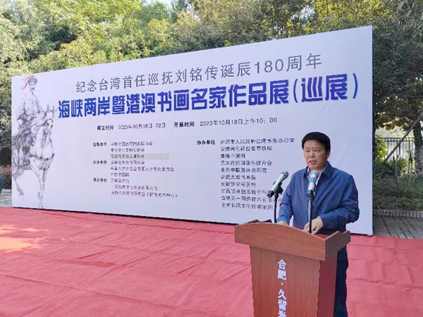2023年10月18日,“纪念台湾首任巡抚刘铭传诞辰 180 周年——海峡两岸暨港澳书画名家作品展(巡展)”在合肥久留米友好美术馆开幕。民革安徽省委会秘书长汪炳俊代表民革安徽省委会出席开幕式并致辞。民革安徽省委会社联部负责人出席。