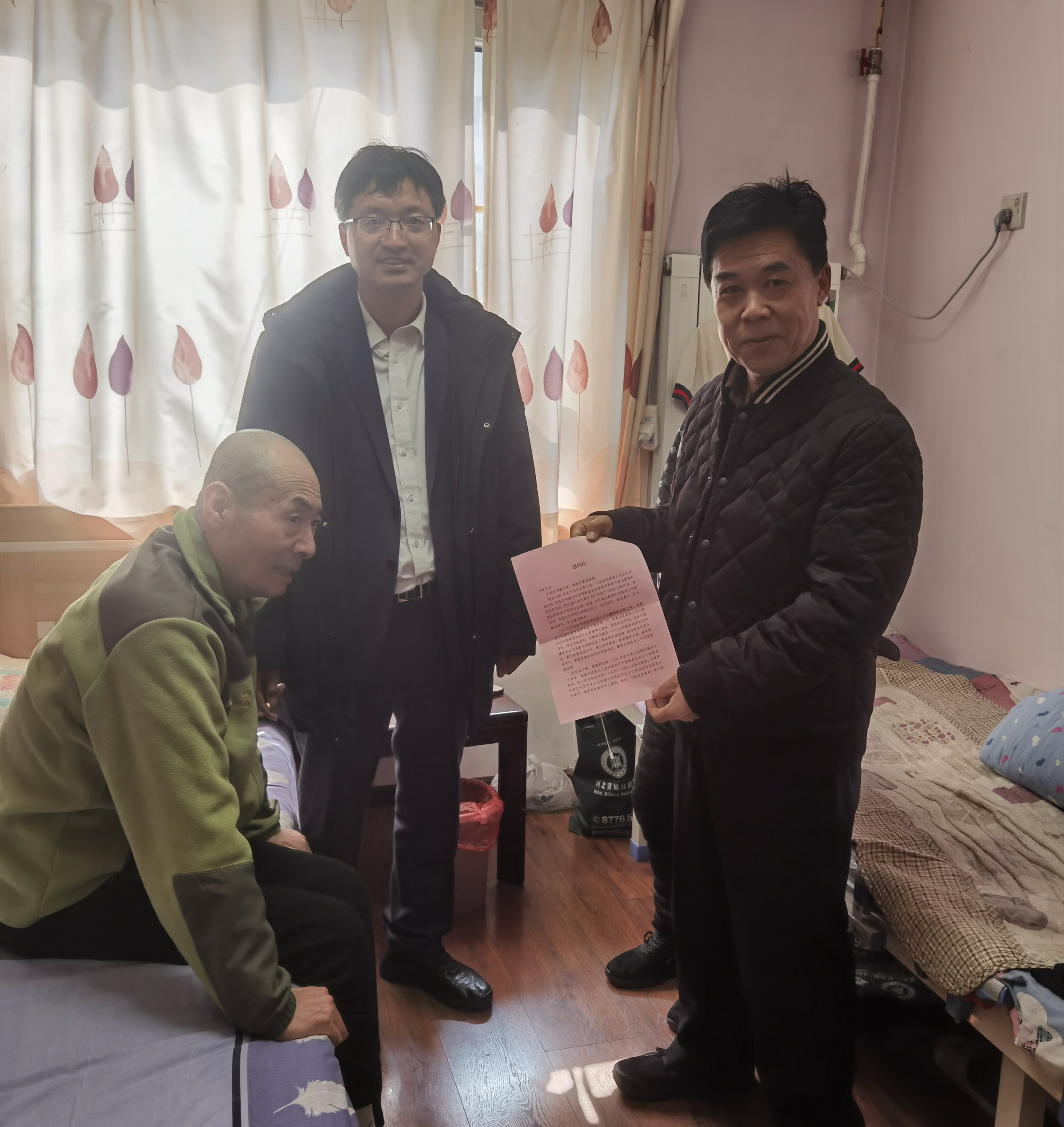 “大家都很牵挂您,希望您身体健康,度过一个平安祥和快乐的春节!”慰问组一行前往白杨家中探望慰问,与其拉家常、问寒暖,详细询问身体状况和生活情况,叮嘱老人保重身体。刘建成表示,民革中央开展“博爱·牵手”关爱困难党员活动,就是希望在民革中央和民革各级组织的帮助下,让困难民革党员顺利渡过难关,早日脱离困境。同时,祝愿白杨重拾信心,恢复健康,尽快步入生活正轨。