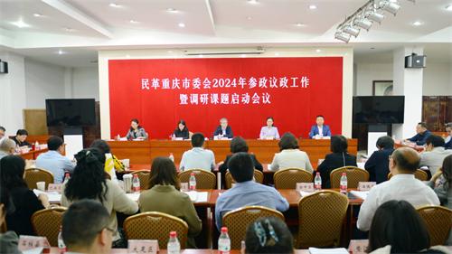 4月17日,民革重庆市委会召开2024年参政议政工作暨调研课题启动会。重庆市政协副主席、民革重庆市委会主委王新强出席并讲话,民革重庆市委会副主委龚小雪、高子清、张洪铭,秘书长刘金萍等出席会议。会议由刘金萍主持。