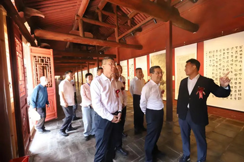 李惠东副主席,张复明主委,台湾孙文学校总校长张亚中,民革福建省委会主委夏先鹏,中共山西省委统战部副部长、省宗教局局长黄杰,中共山西省委台办副主任郝文杰等为书画展剪彩