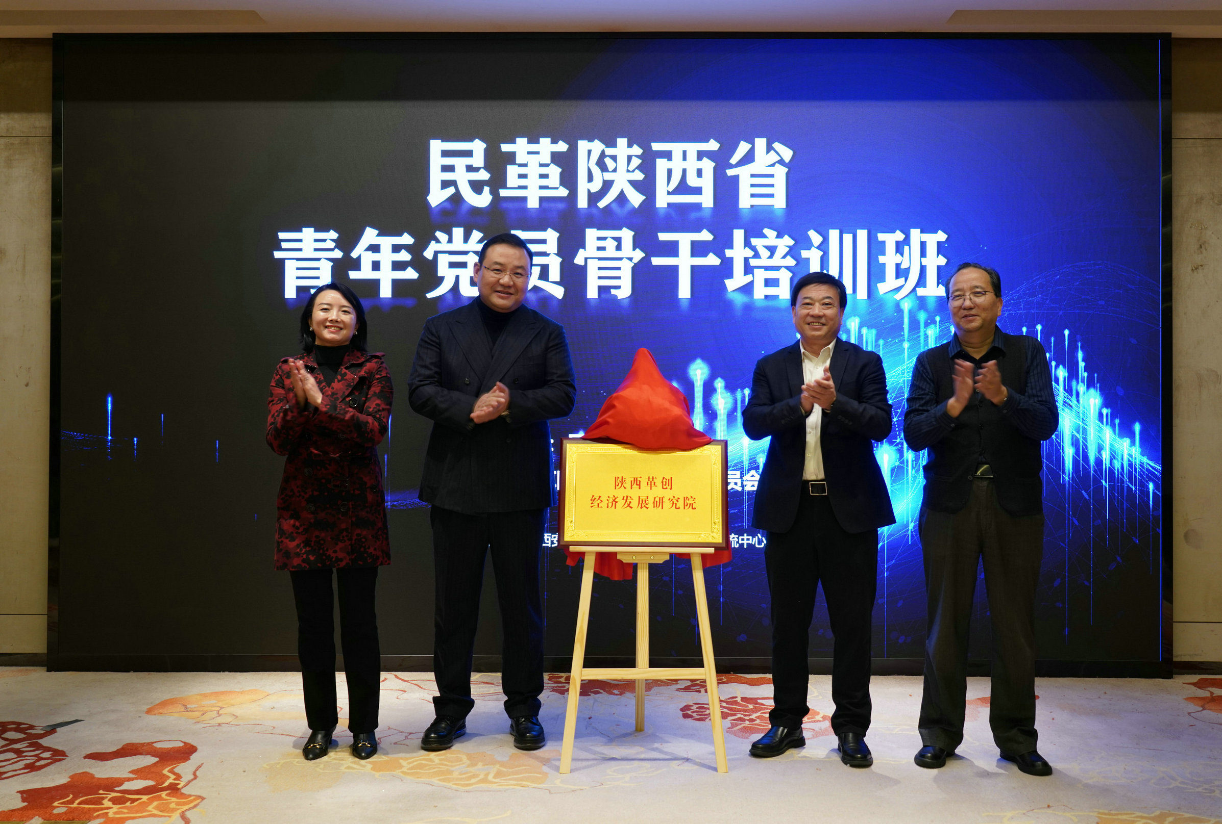培训班上,崔彬、张玉明、谢慧莹、单英骥共同为“陕西革创经济发展研究院”揭牌。