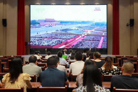 在阅兵式过程中,整齐划一的方队、先进精良的武器装备、昂扬奋进的受阅官兵,激发了机关干部职工的爱国热情,大家为祖国的强大军事力量和繁荣发展感到无比自豪,不时爆发出热烈的掌声。