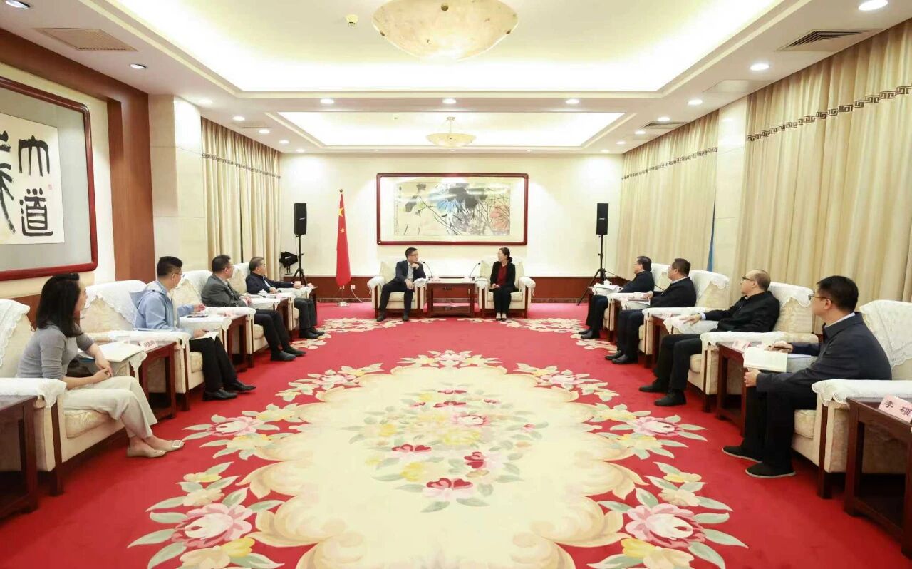 10月13日,民革中央副主席陈星莺在民革中央机关会见人民政协报社总编辑王相伟一行并座谈交流。