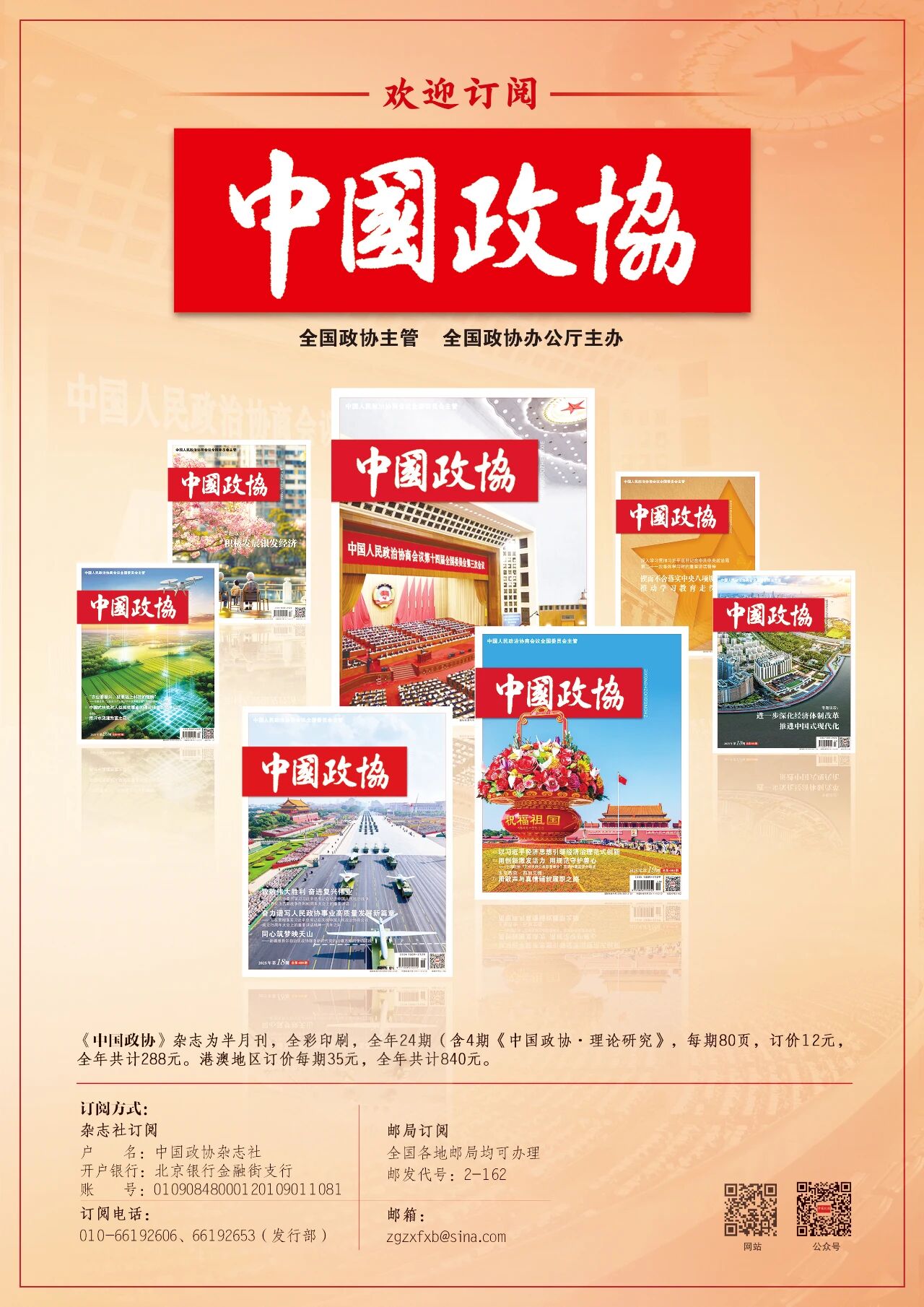 《中国政协》杂志为半月刊,全彩印刷,全年24期(含4期《中国政协·理论研究》),订价每期12元,全年共计288元。港澳地区订价每期35元,全年共计840元。