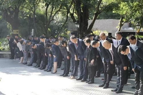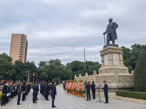 11月12日上午,湖北省暨武汉市各界人士在辛亥革命博物院北区红楼大礼堂举行仪式,纪念孙中山先生诞辰159周年。上午10时,前来参加仪式的各界人士在孙中山先生像前肃立并三鞠躬,表达对孙中山先生的崇高敬意。