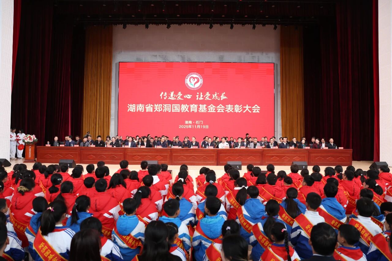 11月19日,湖南省郑洞国教育基金会表彰大会在湖南省常德市石门县石门一中洞国体育馆举行。全国人大常委会副委员长、民革中央主席郑建邦出席并讲话。