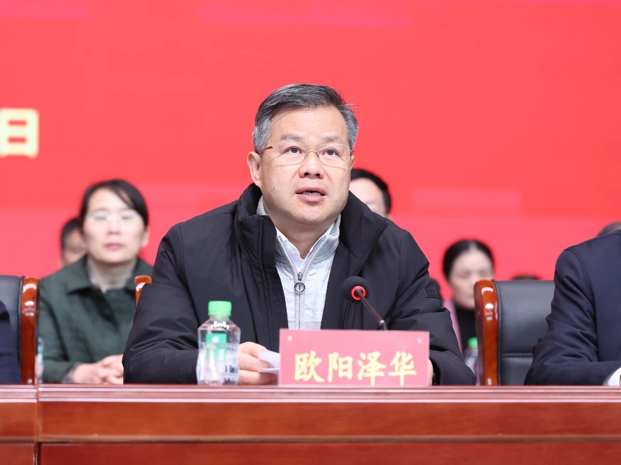 欧阳泽华宣读《关于表彰爱心企业和爱心人士的通报》