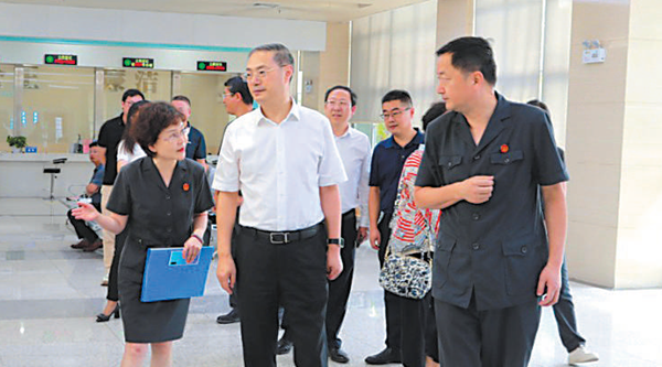 周世虹(右二)到合肥市庐阳区人民法院调研司法改革与人民群众诉讼权利保障情况。