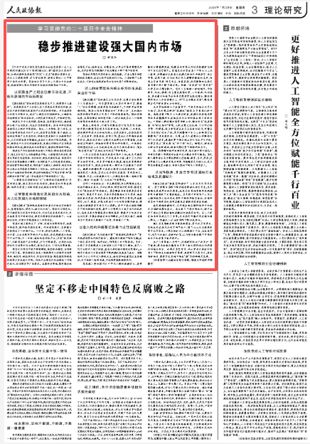 《中共中央关于制定国民经济和社会发展第十五个五年规划的建议》(以下简称《建议》),将“建设强大国内市场,加快构建新发展格局”列为“十五五”时期的重要目标,并从大力提振消费、扩大有效投资、建设全国统一大市场等方面作出部署。笔者结合学习中共二十届四中全会精神,就建设强大国内市场的目标路径问题作如下分析。
