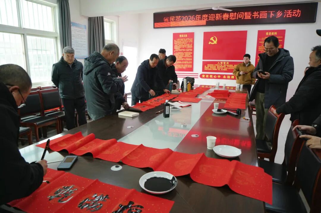 在村委会,陕西民革画院的书画家们挥毫泼墨,为村民书写春联,送上新春祝福,现场洋溢着喜庆祥和的节日气氛。