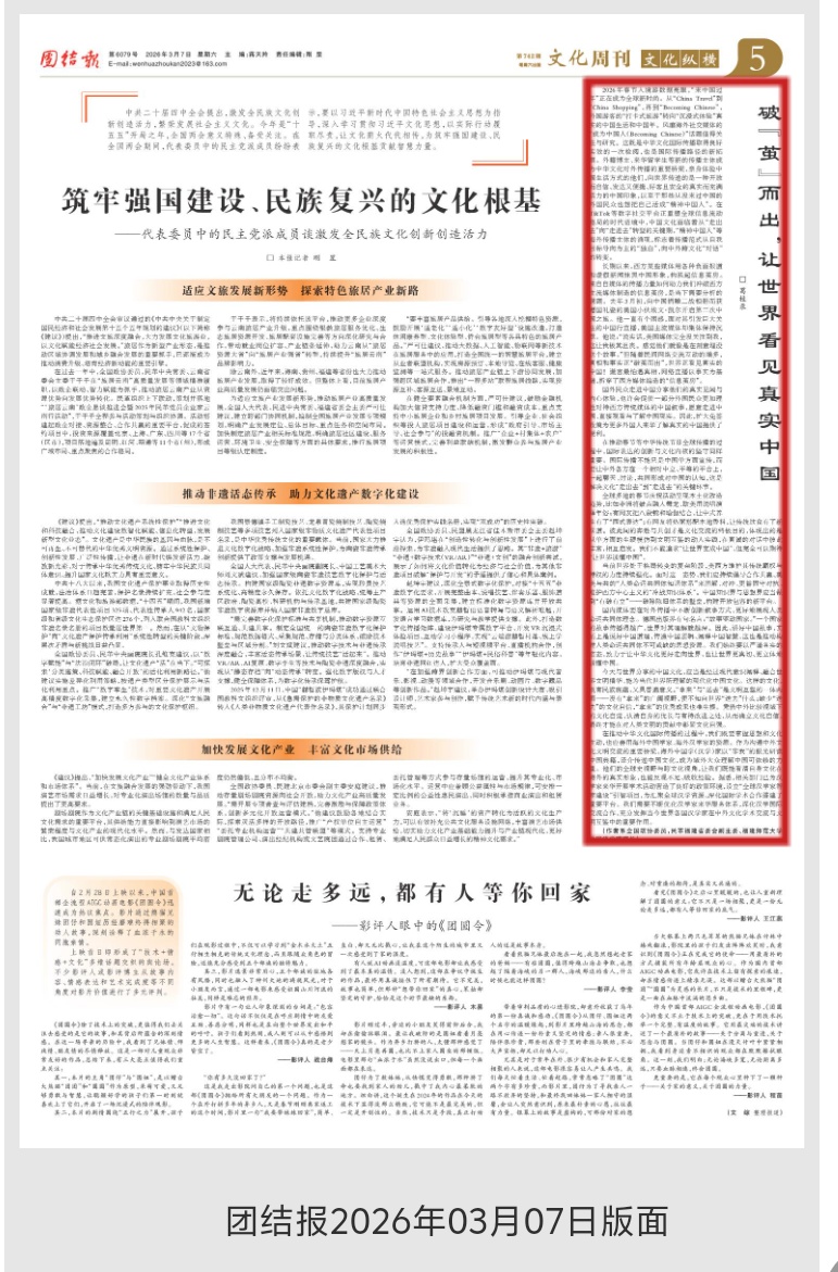 2026年春节入境游数据亮眼,“来中国过年”正在成为全球新时尚。从“China Travel”到“China Shopping”,再到“Becoming Chinese”,外国游客的“打卡式旅游”转向“沉浸式体验”真实的中国生活和中国年。风靡海外社交媒体的“成为中国人(Becoming Chinese)”话题值得关注与研究。这既是中华文化国际传播取得良好实效的一次检阅,也是国际传播路径的新拓展。外籍博主、来华留学生等新的传播主体成为中华文化对外传播的重要桥梁,亲身体验中国生活方式的他们,向世界传递的是一种开放而自信、发达又便捷、好客且安全的真实而充满活力的中国印象,以至于那些从没来过中国的外国民众也想把自己活成“精神中国人”。在TikTok等数字社交平台正重塑全球信息流动格局的时代语境中,中国文化面临着从“走出去”向“走进去”转型的关键期,“精神中国人”等海外传播主体的涌现,标志着传播范式从自我目标导向为主的“独白”,向中外跨文化“对话”的转变。