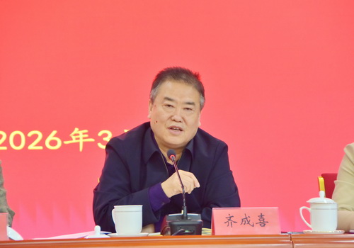 3月25日,民革天津市委会召开2026年度参政议政工作会。民革天津市委会主委齐成喜出席会议并讲话,市委会副主委吴志华、王红梅、郭书宏出席会议。会议由市委会秘书长周潮洪主持。