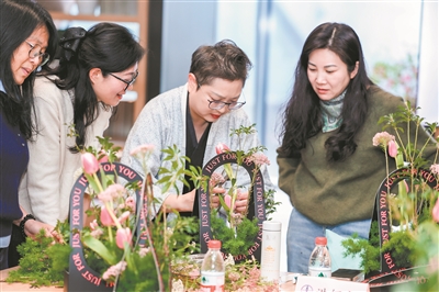3月6日下午,“两岸芳华·和美共绽”妇女节主题活动率先开场。台湾籍专业花艺师洪俪文向民革女党员们讲解花艺基础知识与构图技巧,手把手指导创作。一朵朵芬芳的鲜花、一片片青翠的绿叶,经过一番巧手摆弄,组合成一件件错落有致的作品。