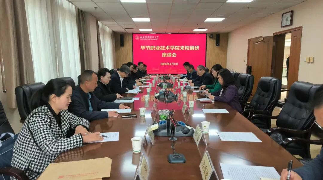 为落实民革中央“地域+领域”组团式帮扶毕节工作要求,4月9日,民革陕西省委会副主委杜海峰、毕节职业技术学院党委书记赵军率考察组,赴西北农林科技大学、陕西农林职业技术大学考察交流,搭建校际帮扶平台,共谋毕节职业技术学院高质量发展。