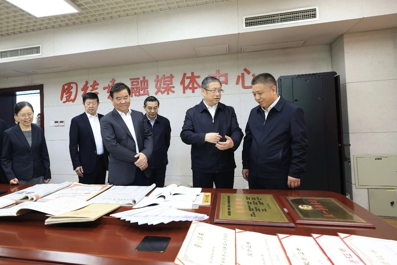 郑建邦一行参观了《团结报》创刊70周年历史版面展,并为《团结报》网上报史馆揭幕。在团结报社演播室,郑建邦与团结报社派驻纳雍县陶营村的驻村第一书记视频连线,详细询问当地发展情况并表达慰问。随后,郑建邦一行来到报社融媒体中心,了解近年来报社各方面工作成果,观看《团结报》创刊70周年专题片,为《团结报·艺术专刊》(样刊)启封。